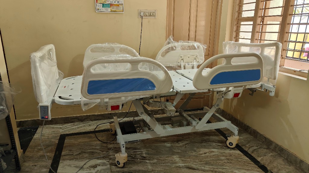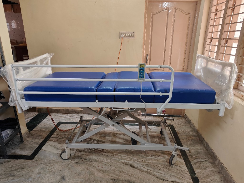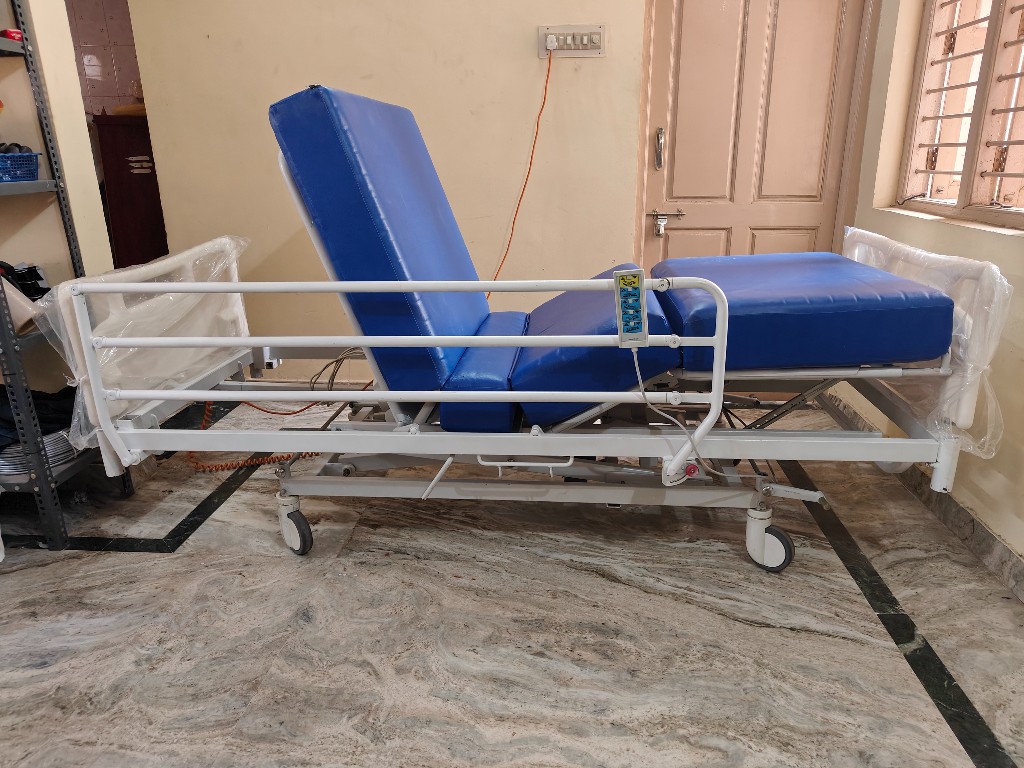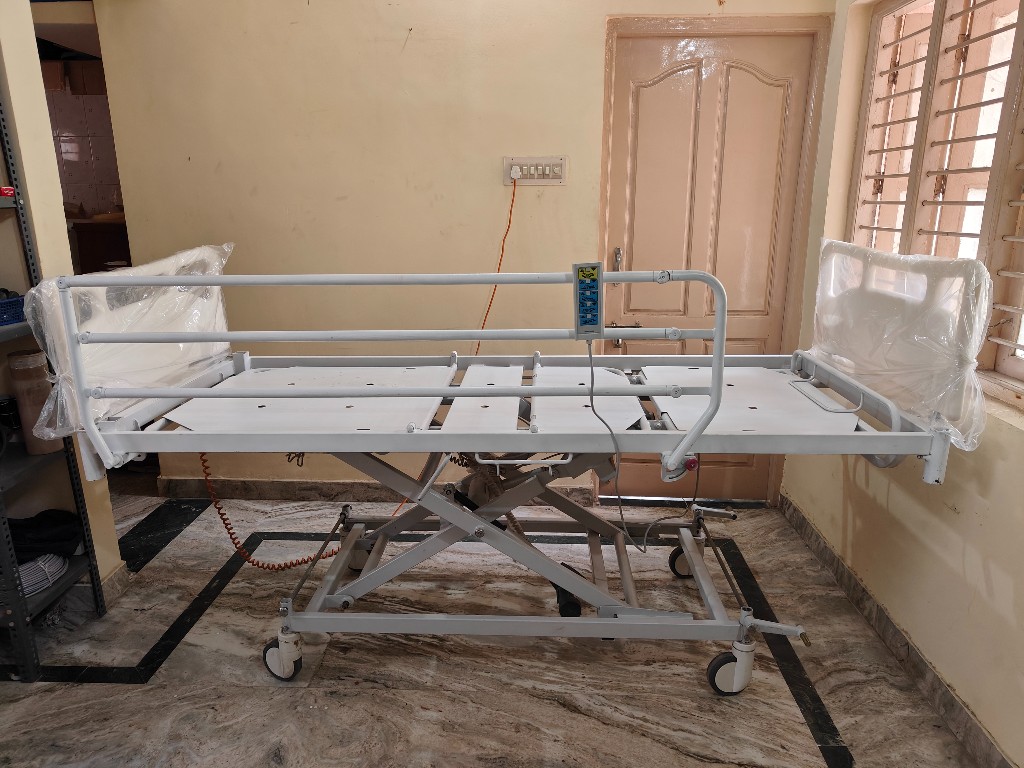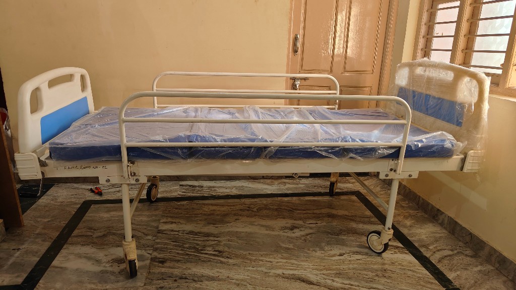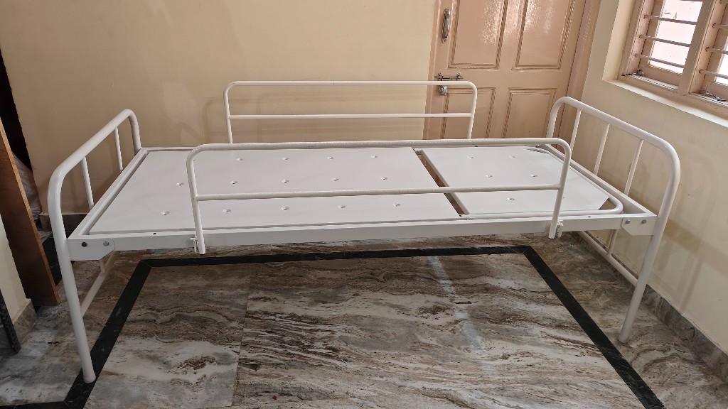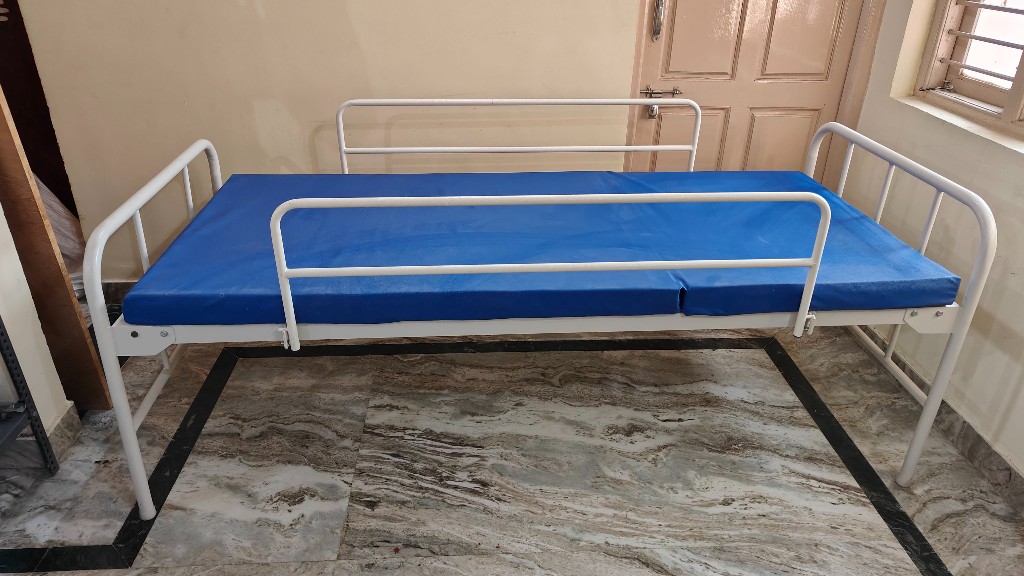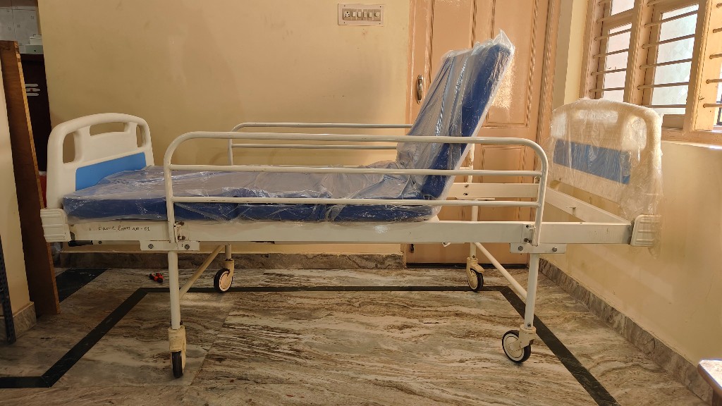 Manually cranked hospital bed ideal for home care where reliable head elevation is required without complex electrical components.